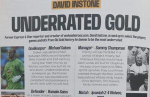 Sunday, March 1: Finally caught up on reading the Wolves v Chelsea programme from a few weeks ago and was pleased to see they had used my contribution to the regular ‘Underrated Gold’ guest-writer feature just inside the back cover. It keeps alive my record of having had articles printed in the Wolves programme in every season for about the last 38.